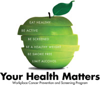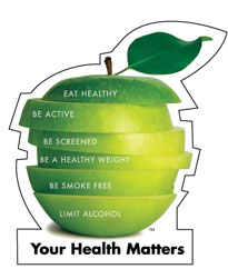 Full colour magnet, 3” x 3 1/4”, .030” thick, die cut into the "Your Health Matters" apple shape.