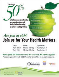 | Posters : $0.65 each (English only) Promote your sessions and increase attendance! Full colour, on 100lb gloss. Your choice of 8.5x11” or 11x17”. Personalized with your specific event details and supplied site specific logos. |